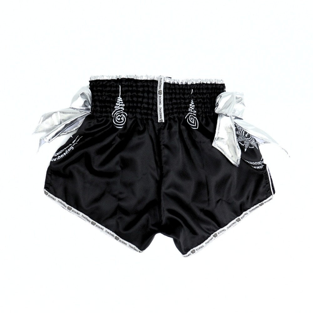 ThaiSmai [SAK YANT BOW] Muay Thai Shorts Train like a legend with Thaismai Muay Thai Shorts. one of Thailand’s original Muay Thai brands trusted by fighters for decades. Crafted in the heart of Bangkok, these shorts deliver authentic style, comfort. that’s stood the test of time in gyms and stadiums across Thailand. Made from high-quality Satin, Thaismai shorts offer a lightweight with a traditional wide waistband for a secure hold during intense training or fights. Each pair features bold Thai-style embroidery( MuayThai) and classic Muay Thai cuts that allow maximum freedom of movement – perfect for kicks, knees, and clinch work.